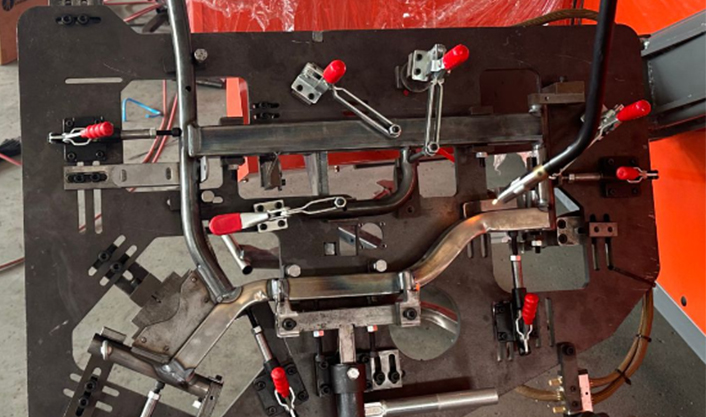 The core breakthrough lies in our independently developed multi-axis collaborative welding robot and high-precision integrated tooling, which completely reconstructs the welding logic. With just one clamping operation, you can complete the simultaneous welding of 12 key connection points on the wheelchair main frame and its components, achieving "one-time molding" from loose parts to high-integrity structural components.